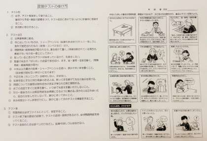不正行為を理解すること。不正行為だと言われることへの知識。座る順番やプリントの回収。机の中の状態などを知っていきます。