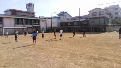 サッカー部は土日の連数試合に向け、気持ちと技術を向上させるため、互いに声を掛け合います。