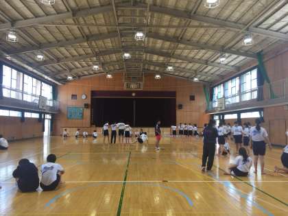 この時間は、体育大会の練習です。個人の動きと全体の様子をしっかり把握して形を作ります。