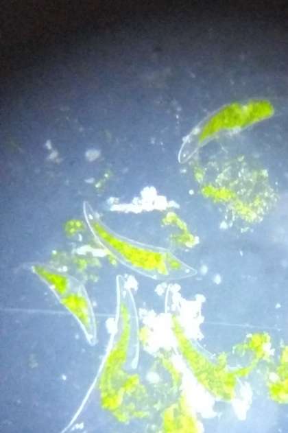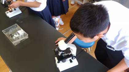 今日は、プレパラートを作って顕微鏡で「ボルボックス」や「三日月藻」を見ました。