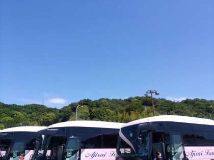 一泊移住の一行は和歌山県紀の川サービスエリアに入りました。少しバス酔いした生徒も居ますか、もう少しです。