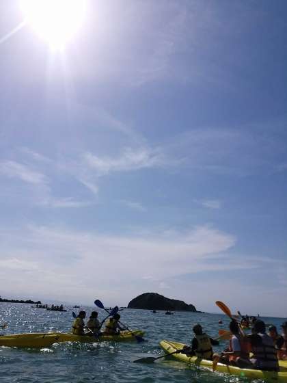 カヤックも出廷です。ずいぶん暖かくなってきてもう生徒達はビチャッビチャッになって楽しんでいます。