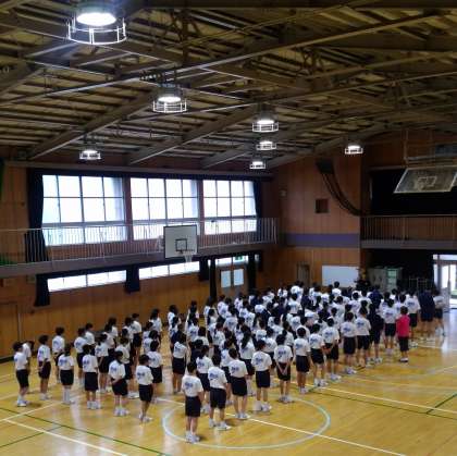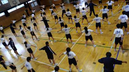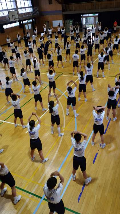 あいにくの雨ですので、体育館で練習をしている2年生です。