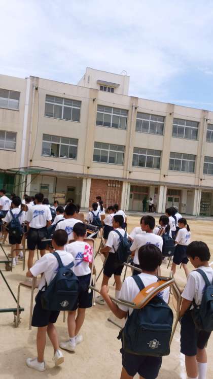 教室に椅子を持ってあがって、これから給食の時間です。