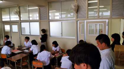 大学の先生も来ていただき、授業する様子や生徒の表情を見ています。