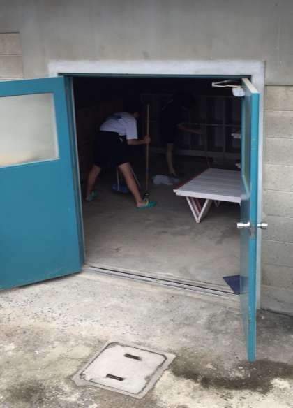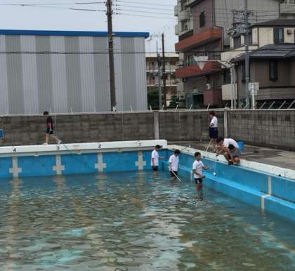 本日、ラグビー部員とバレーボール部員がプール清掃をしてくれています。
