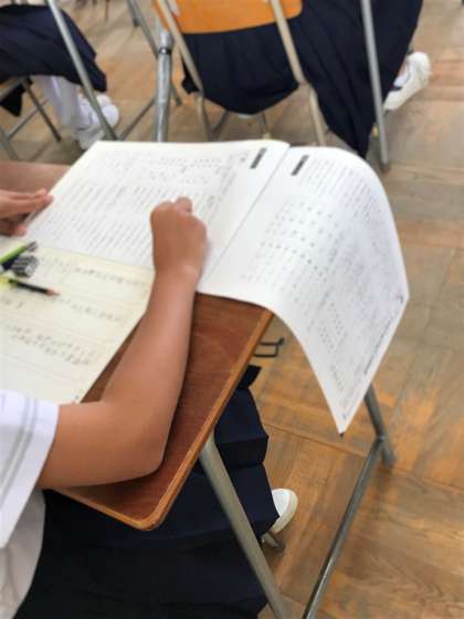 漢字検定を受験している様子です。