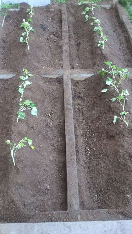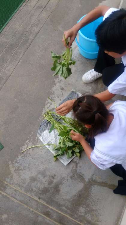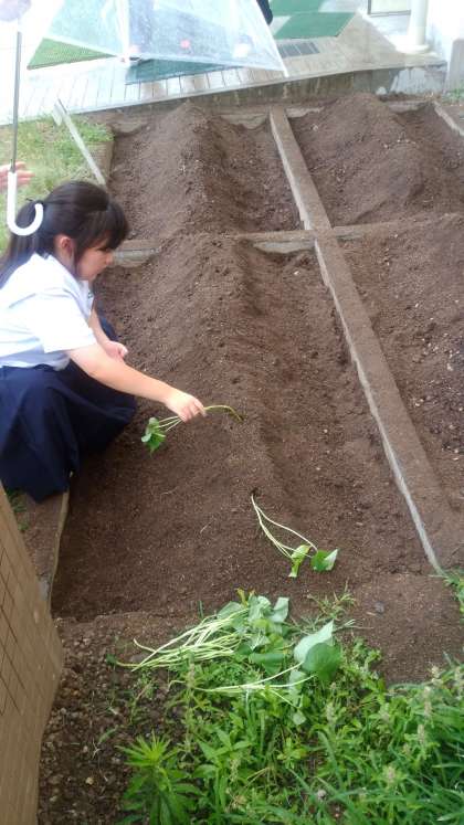 支援学級では、サツマイモの苗を畑に植えました。