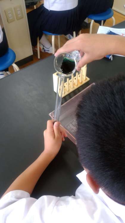 BTB溶液を使って、アルカリ性か酸性を見ています。