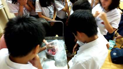 胎盤を見せて頂きました。こんな貴重な体験をさせて頂き、驚きの声も上がりました。
