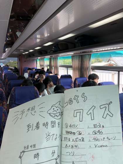 修学旅行(8) 公開日 2018/07/03 更新日 2018/07/03 校内の様子 7月3日(火)10:00 バスの中ではバスレク担当が考えてくれたクイズレクリエーションをしています。 いいね(0)