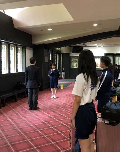 ホテルに入って、入館式をしています。