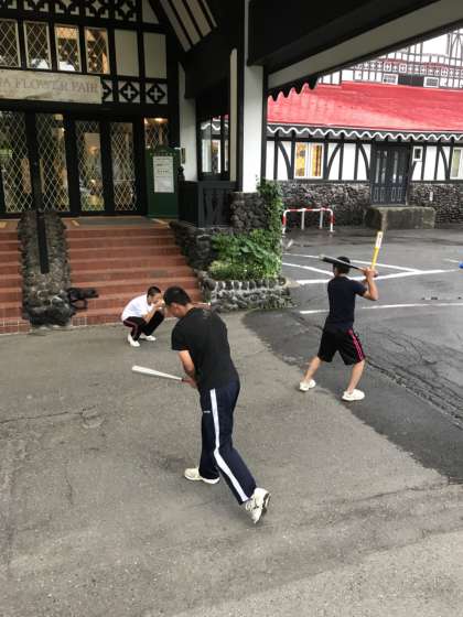 まだ静まりかえった白馬村。野球部員は無理をお願いして朝練をさせて貰っています。修学旅行から帰阪してすぐに試合が始まります。