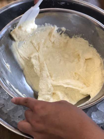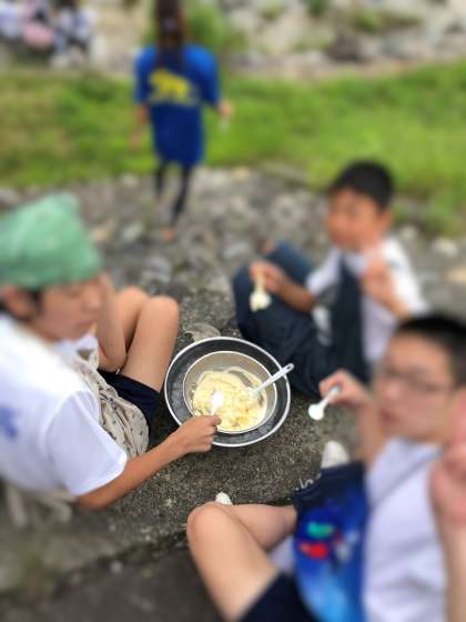 完成したアイスクリームを河原で食べさせていただきました。