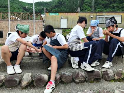 実食後、河原遊びに夢中です。