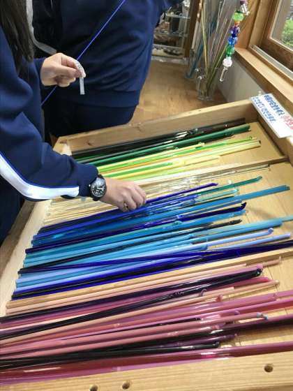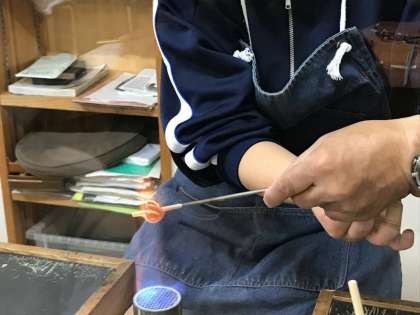 綺麗なガラス棒を選んで、加熱して玉にしていきます。