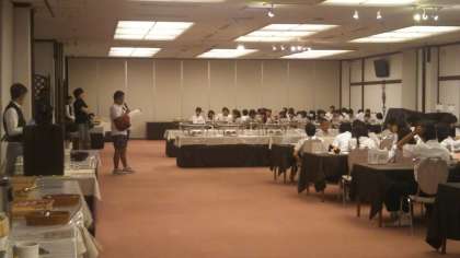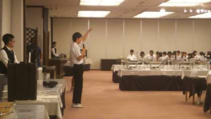 朝食が終わり、生徒代表のごちそうさまと、学年主任の先生から今後の予定等を伝えています。