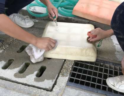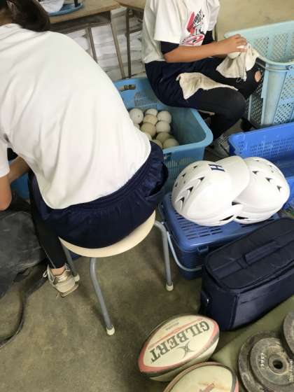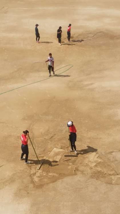 ソフトボール部は用具やグラウンドの整備を行っています。