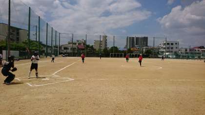 ソフトボール部の新チームは合同練習の後、試合をさせて頂いています。
