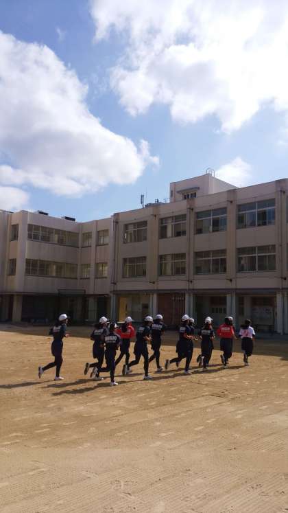 少しミーティングをして、ランニングを始めたソフトボール部。しっかり声を出すことからです。