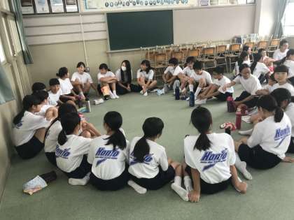 J pop甲子園のかけ声を練習しています。このあとダンスの練習をしていきます。
