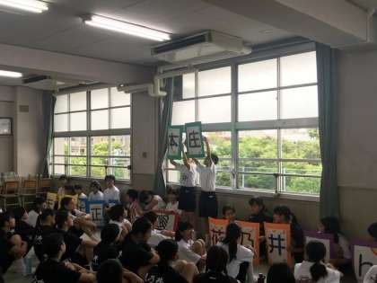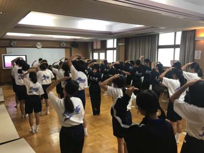 1年生は楽器の演奏はしませんが、かけ声やダンスで「たそがれコンサート」を盛り上げられるようがんばっています。
