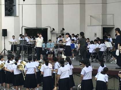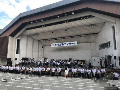 本日、大阪城野外音楽堂にて行われます、たそがれコンサート。本庄中学校を含む合同チームは本番直前のリハーサルを始めました。