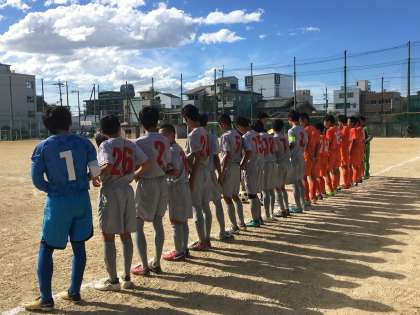 本日の大阪市秋季大会5ブロック予選、決勝トーナメント1回戦は、新生野中学校と対戦し、1−0で勝利することが出来ました。