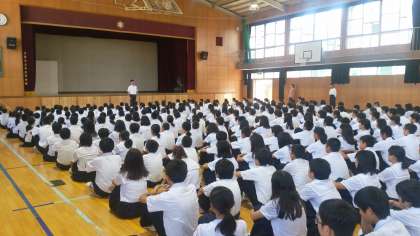 ひとりひとりがほんの少し頑張れば、本庄中学校はとてもいい学校になる。そんな思いを持って2学期頑張って欲しいという話をしました。