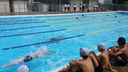 まだまだとても暑い日が続いていますので、着水している生徒はとても気持ち良さそうに泳いでいます。