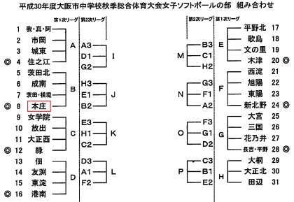 平成30年度大阪市中学校秋季総合体育大会女子ソフトボールの部。組合わせについてお知らせします。
