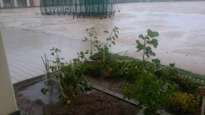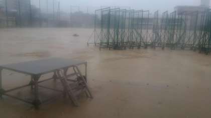 とうとうひまわりが折れてしまいました。校舎内にも水が入ってきています。