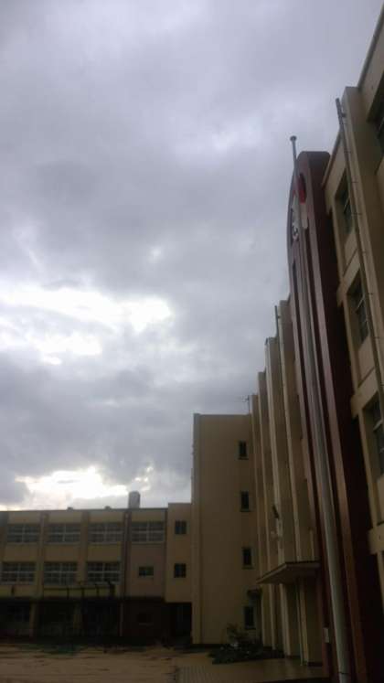 校内にかなりの傷跡を残し去って行った台風21号。まだ校外では消防のサイレンが鳴りまやずにいます。