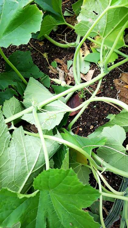 技術の授業で栽培しています「カボチャ」小さな小さな実が付きはじめました。