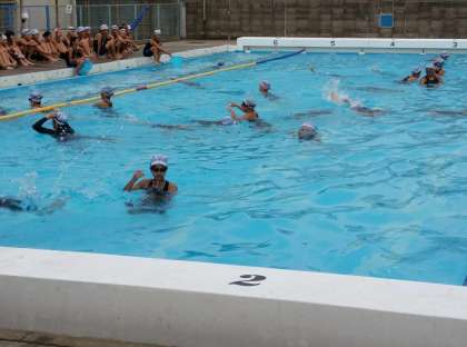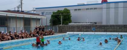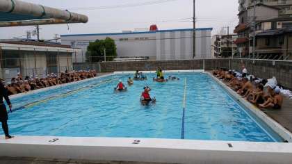 騎馬戦などの競技です。水泳大会も最後のプログラムです。