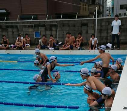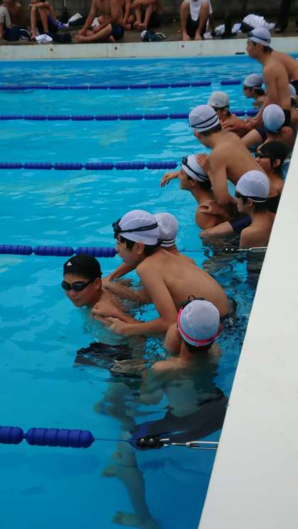 騎馬リレーが始まりました。少しでも手を伸ばしてバトンをもらいます。