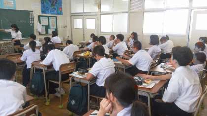 水槽の底に置いた石はどこに浮いて見えるのか。作図をして理解していきます。