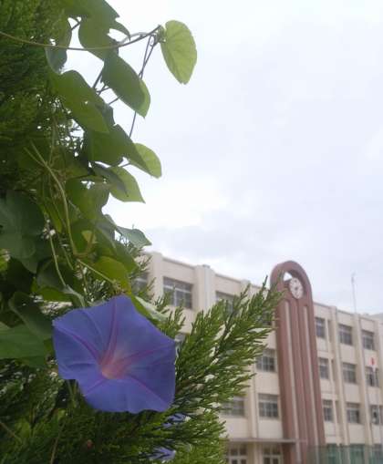 隣接する公園はまだ台風の爪痕が大きく残っていますが、校内にはこんな花も咲いています。