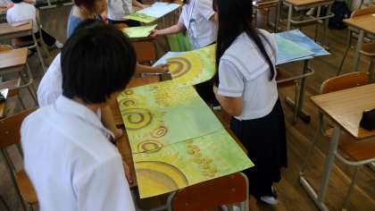 部員が大幅に増えたので、合同で大きな絵に取り組んでいます。