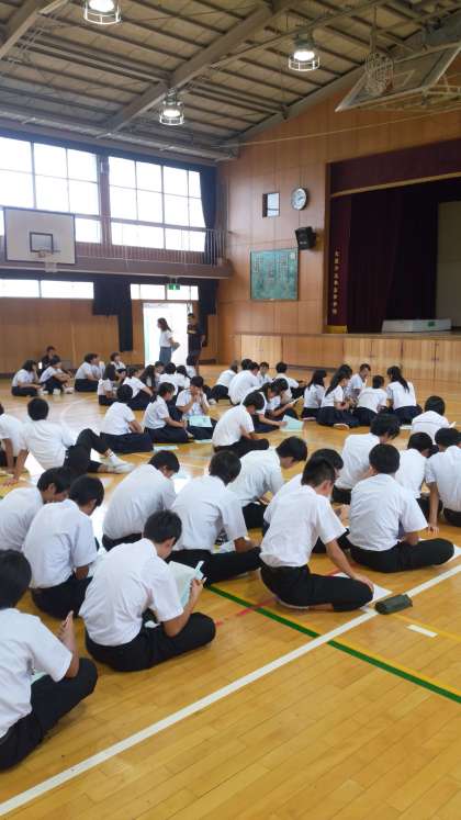 写真は体育館で舞台の役割りをはっきり把握し、これからの日程的なことや、やるべきことを自分たちで確認していっています。