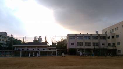 少し曇ってきました。グラウンドは野球とサッカーが練習しています。
