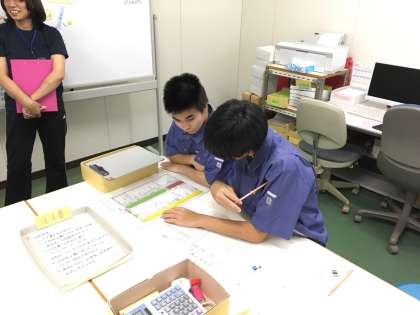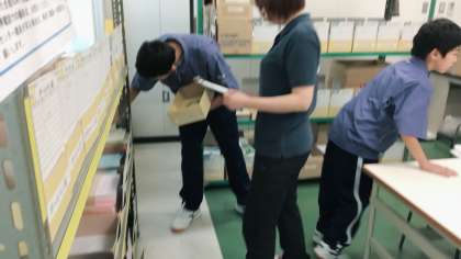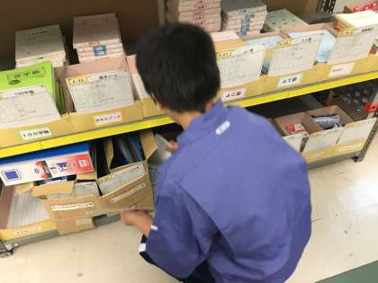特別支援学級の生徒がさんかさせて頂いていますキャリア教育支援センターの実習は昨日に引き続き、ピッキング作業と紙器加工に分かれて作業をします。