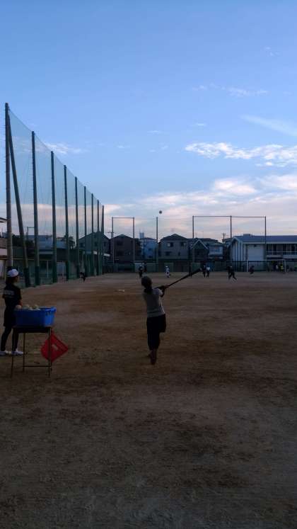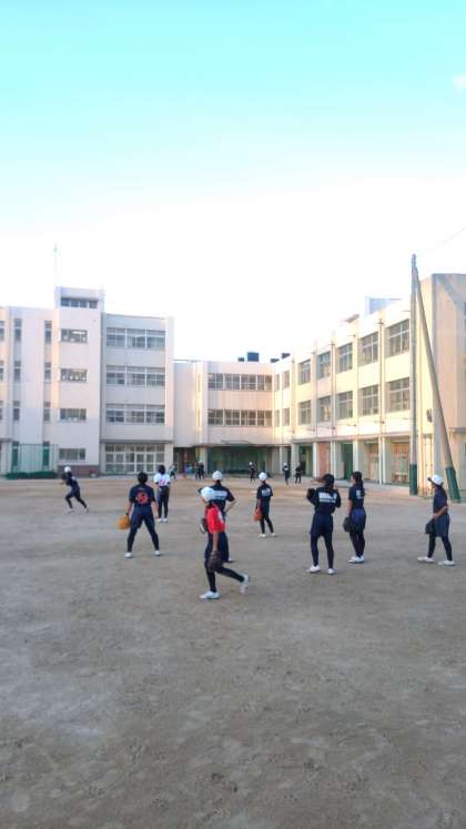 ソフトボール部はノックを受けています。ライナー線のフライを受けることは、より早く落下地点に行くことが重要です。