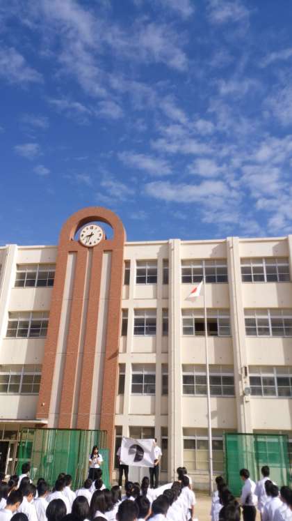 生徒会からチャイム着席についての重要性などの話が、意識調査データーをもとに説明がありました。