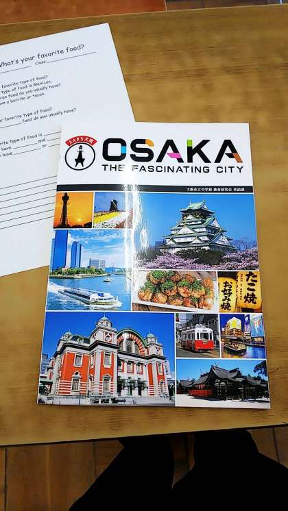 大阪市について扱ったテキストも使って、大阪のエエところをネイティブの先生にプレゼンする準備をしています。