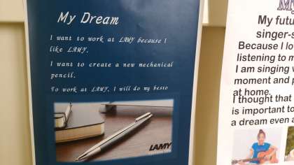 それぞれの夢を改めて書いるようです。英語、デザインなどそれぞれの工夫がとてもよく出ています。