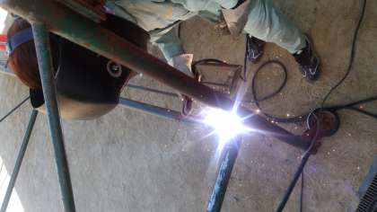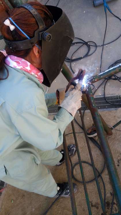 アーク放電時に発生する熱を使って鉄と鉄を接続していきます。