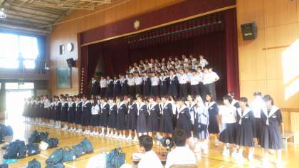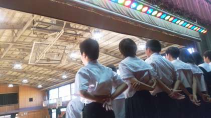 1年生は本番さながら、体育館の舞台に上がって練習をしています。