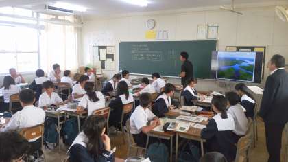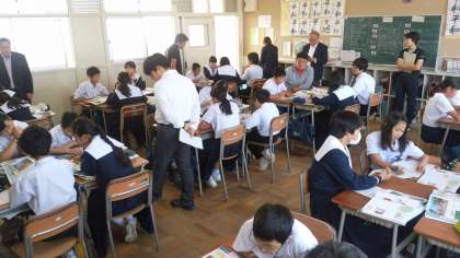 授業相互参観を行っているこの時間。多くの先生が参観しています。