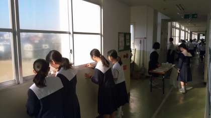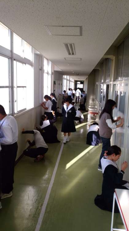 文化発表会に向け、少しでもきれいな校舎で展示できるよう頑張っています。